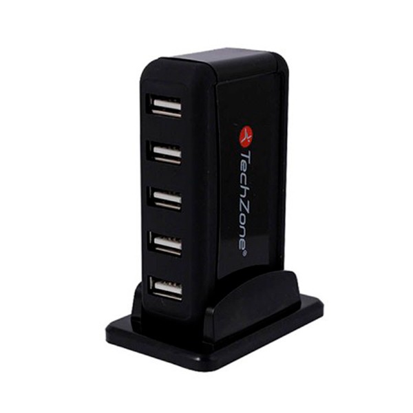 Hub TechZone, 7 puertos USB 2.0, color negro con fuente de poder para el incremento de tasa de transferencia, 1 año de garantía.