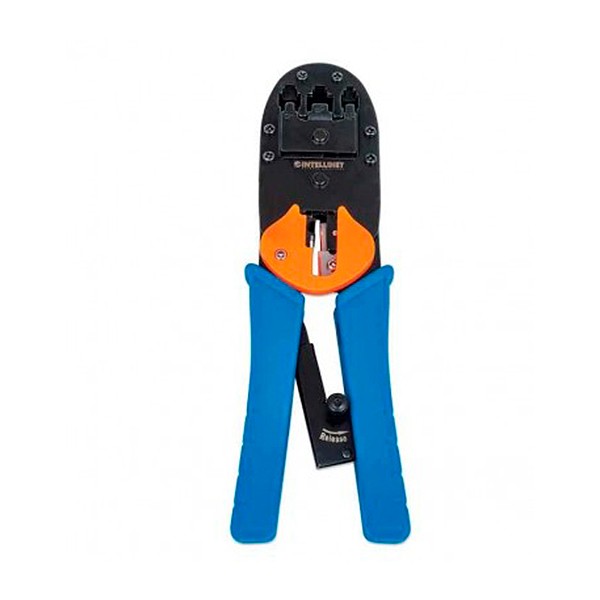Pinza INTELLINET para crimpear plug modular RJ45, RJ12 y RJ11, Corta y quita el forro de cable redondo y plano.