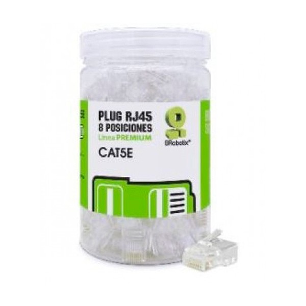 Plugs RJ45, CAT5e, Multifilar, Modular, UTP sólido, Bote c/100 Pzs, Contactos c/Chapa de oro a 30 micras, Transparente, 263786 BROBOTIX